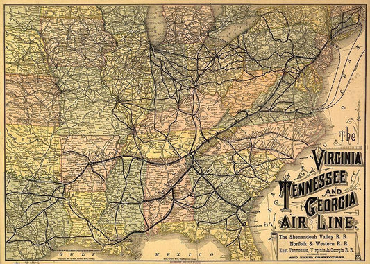 Virginia Tennessee and Georgia Air Line 1882 White Modern Wood Framed Art Print with Double Matting by Vintage Maps