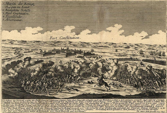Battle of Fort Constitution 1777 White Modern Wood Framed Art Print with Double Matting by Vintage Maps