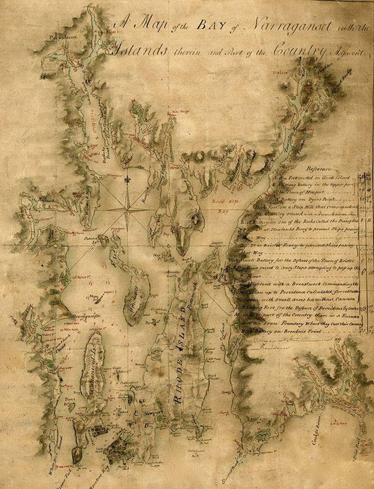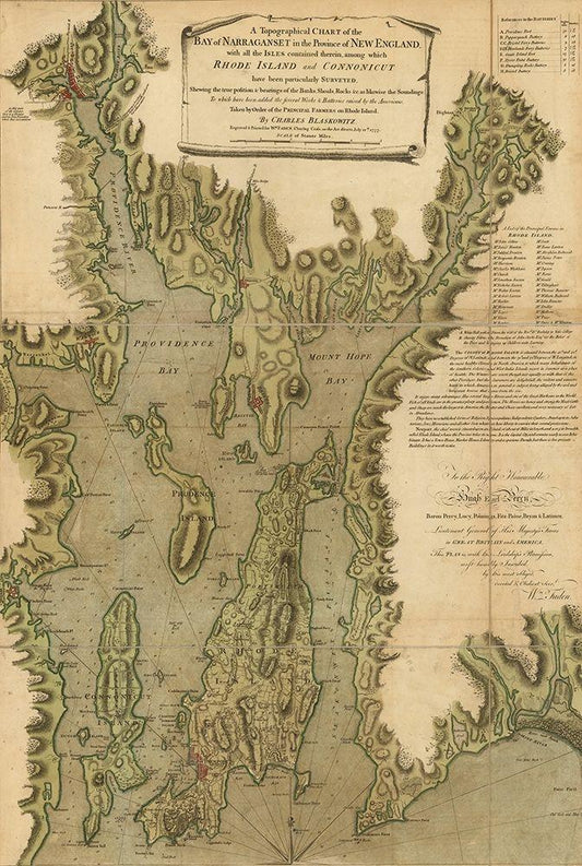 Narragansett Bay 1777 White Modern Wood Framed Art Print with Double Matting by Vintage Maps
