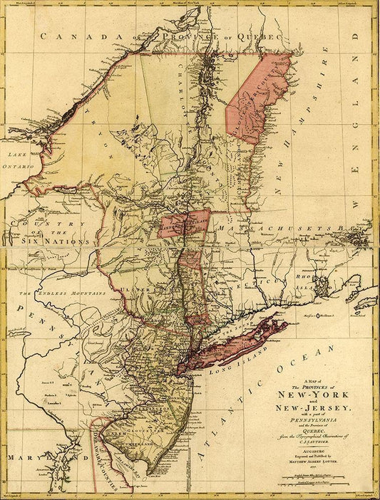 Provinces of New York and New Jersey with a part of Pennsylvania and the Province of Quebec 1777 White Modern Wood Framed Art Print with Double Matting by Vintage Maps
