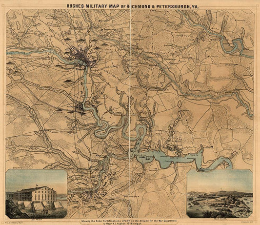 Richmond and Petersburg Va Showing the Rebel fortifications 1864 White Modern Wood Framed Art Print with Double Matting by Vintage Maps