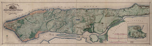Manhattan Island 1865 White Modern Wood Framed Art Print with Double Matting by Vintage Maps