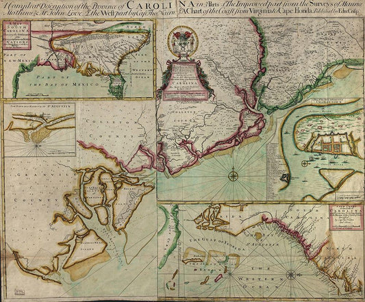 Carolinas in 1711 White Modern Wood Framed Art Print with Double Matting by Vintage Maps