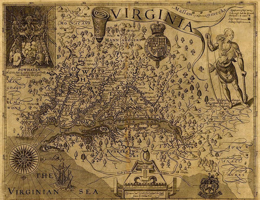 Virginia Discovered and described by john Smith 1606 White Modern Wood Framed Art Print with Double Matting by Vintage Maps