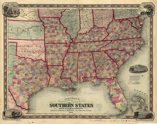 Southern States Before the Outbreak of War 1860 White Modern Wood Framed Art Print with Double Matting by Vintage Maps