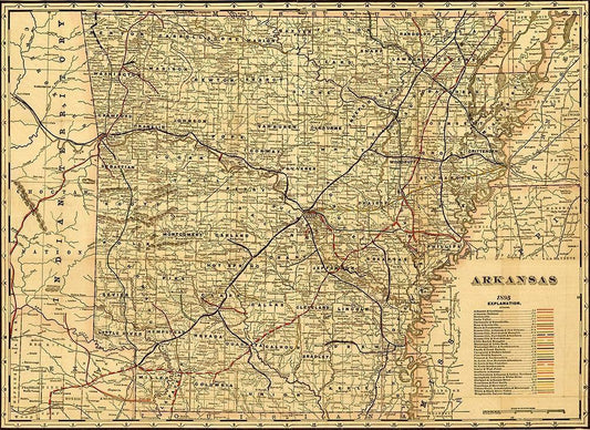Arkansas 1895 White Modern Wood Framed Art Print with Double Matting by Vintage Maps