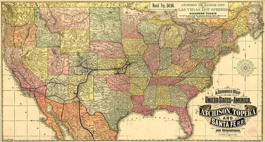Atchison Topeka and Santa Fe R R 1888 White Modern Wood Framed Art Print with Double Matting by Vintage Maps