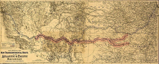 transcontinental route of the Atlantic and Pacific Railroad and its connections White Modern Wood Framed Art Print with Double Matting by Vintage Maps
