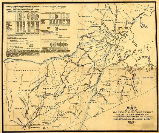 Boston and Woonsocket 1847 White Modern Wood Framed Art Print with Double Matting by Vintage Maps