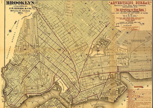 Brooklyn Street Map 1874 White Modern Wood Framed Art Print with Double Matting by Vintage Maps