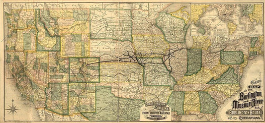 Burlington and Missouri River R R the Burlington Route 1882 White Modern Wood Framed Art Print with Double Matting by Vintage Maps