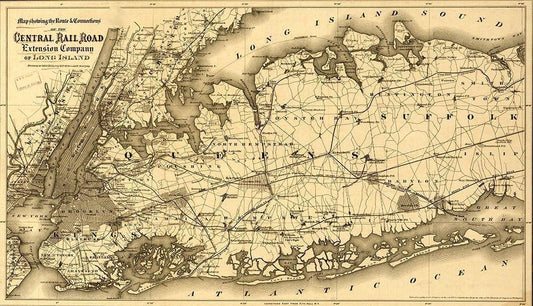 Central Rail Road Extension Company of Long Island 1873 White Modern Wood Framed Art Print with Double Matting by Vintage Maps