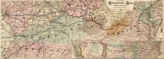 Chesapeake and Ohio Railroad 1873 White Modern Wood Framed Art Print with Double Matting by Vintage Maps