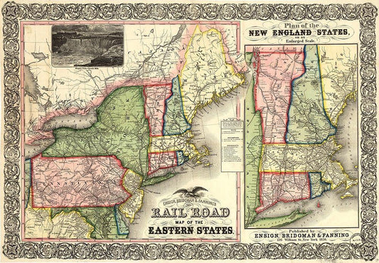 Road Map of the Eastern States 1856 White Modern Wood Framed Art Print with Double Matting by Vintage Maps