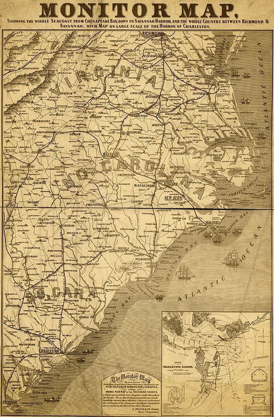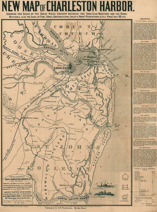 Charleston Harbor Battle of the Iron Clads White Modern Wood Framed Art Print with Double Matting by Vintage Maps