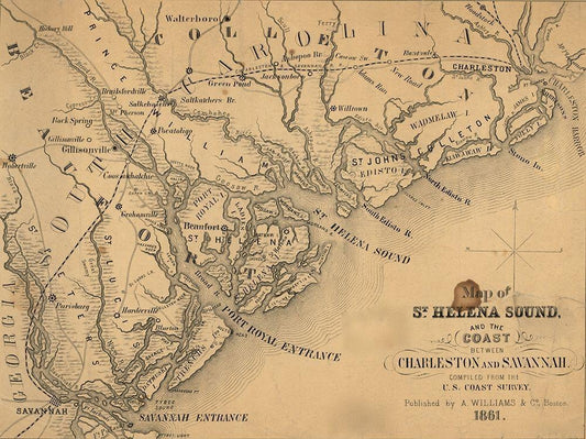 St Helena Sound and the coast between Charleston and Savannah 1861 White Modern Wood Framed Art Print with Double Matting by Vintage Maps