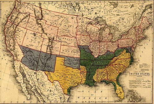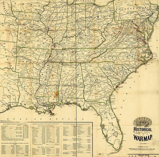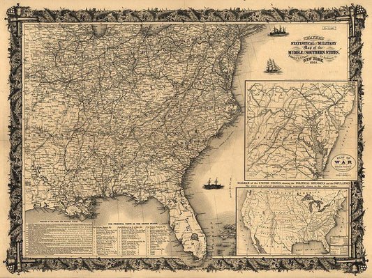 Statistical and military map of the middle and southern states 1861 White Modern Wood Framed Art Print with Double Matting by Vintage Maps