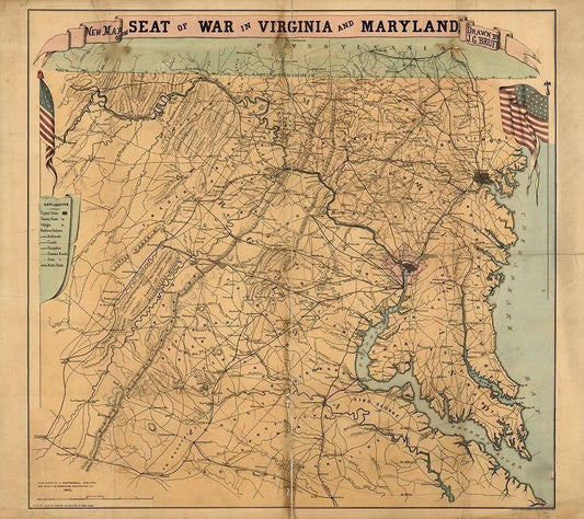 Seat of War Virginia and Maryland 1863 White Modern Wood Framed Art Print with Double Matting by Vintage Maps