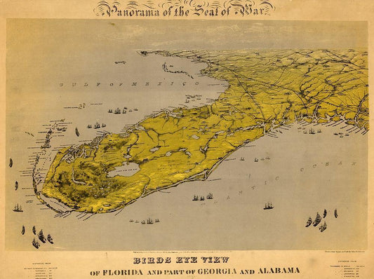 Birds eye view of Florida and part of Georgia and Alabama 1861 White Modern Wood Framed Art Print with Double Matting by Vintage Maps