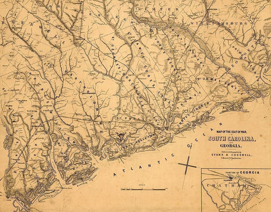 Seat of War in South Carolina and Georgia 1861 White Modern Wood Framed Art Print with Double Matting by Vintage Maps