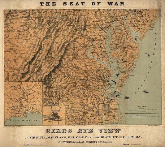 Birds Eye View of the Seat of War 1861 White Modern Wood Framed Art Print with Double Matting by Vintage Maps