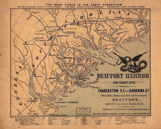 Naval Force in the Great Expedition Beaufort Harbor 1861 White Modern Wood Framed Art Print with Double Matting by Vintage Maps