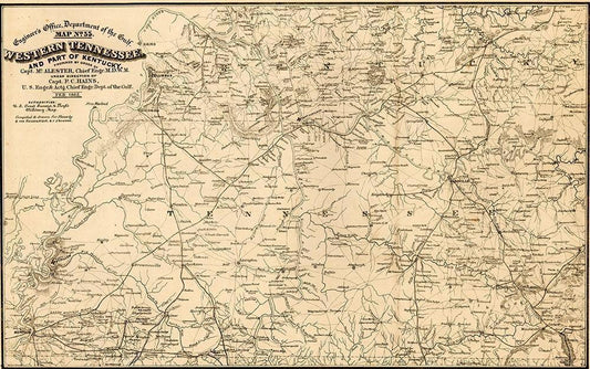 Western Tennessee and Part of Kentucky 1865 White Modern Wood Framed Art Print with Double Matting by Vintage Maps