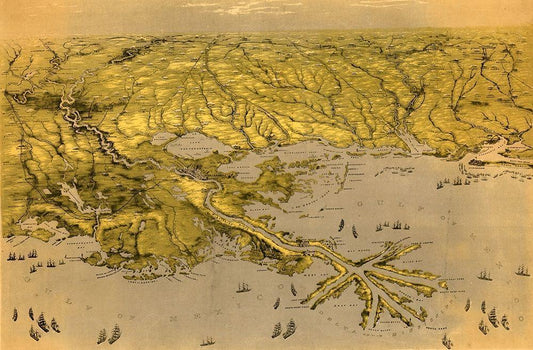 Birds eye view of Louisiana Mississippi Alabama and part of Florida 1861 White Modern Wood Framed Art Print with Double Matting by Vintage Maps