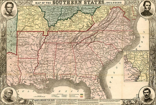 Southern States During the Rebellion 1863 White Modern Wood Framed Art Print with Double Matting by Vintage Maps