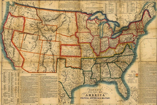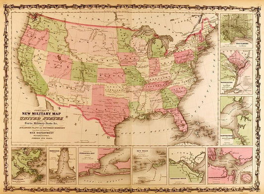 Military Map of the United states 1863 White Modern Wood Framed Art Print with Double Matting by Vintage Maps