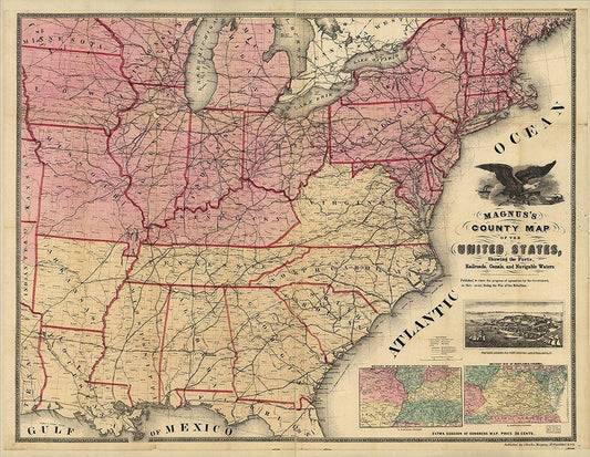 Eastern Seaboard in 1863 White Modern Wood Framed Art Print with Double Matting by Vintage Maps