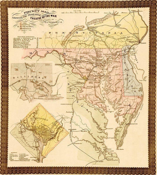 Pocket Map of the Probable Theatre of War 1861 White Modern Wood Framed Art Print with Double Matting by Vintage Maps
