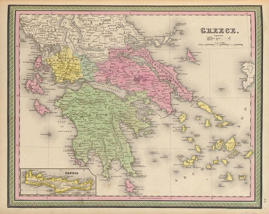 Greece 1849 White Modern Wood Framed Art Print with Double Matting by Vintage Maps