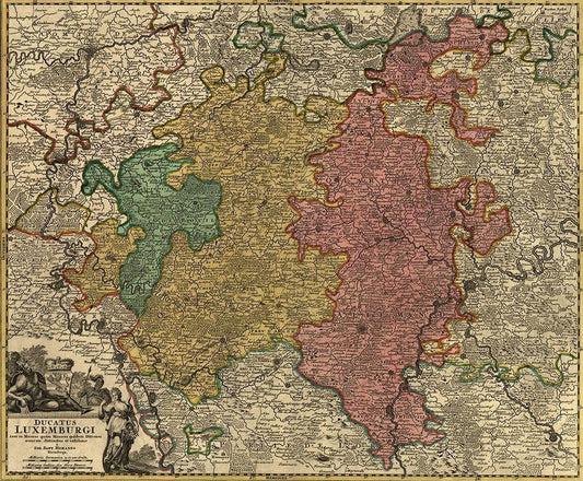 Duchy of Luxemburg 1700 White Modern Wood Framed Art Print with Double Matting by Vintage Maps