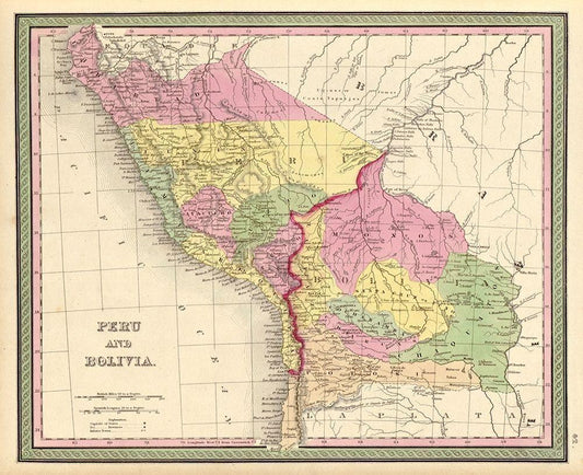 Peru and Bolivia 1849 White Modern Wood Framed Art Print with Double Matting by Vintage Maps