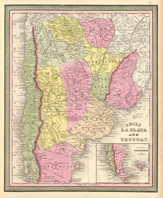 Chilie La Plata Uruguay 1849 White Modern Wood Framed Art Print with Double Matting by Vintage Maps