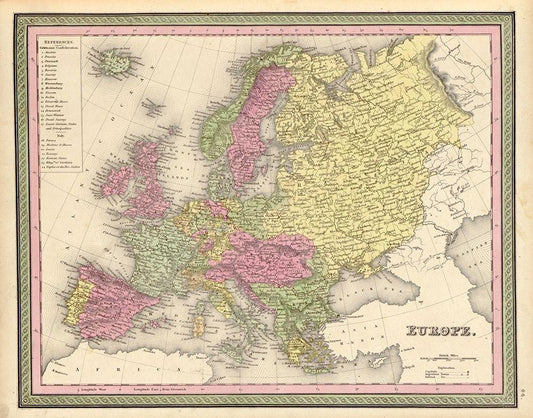 Europe 1849 White Modern Wood Framed Art Print with Double Matting by Vintage Maps
