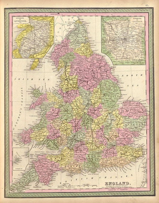 England 1849 White Modern Wood Framed Art Print with Double Matting by Vintage Maps