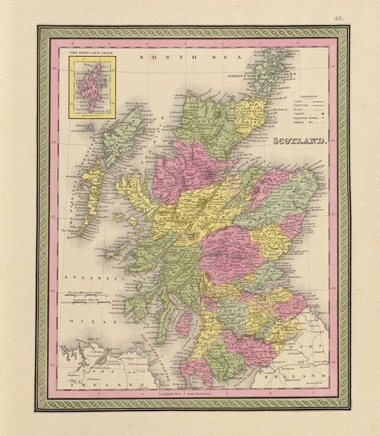 Scotland 1849 White Modern Wood Framed Art Print with Double Matting by Vintage Maps