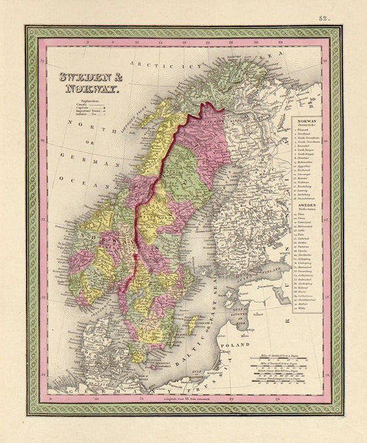 Sweden and Norway 1849 White Modern Wood Framed Art Print with Double Matting by Vintage Maps