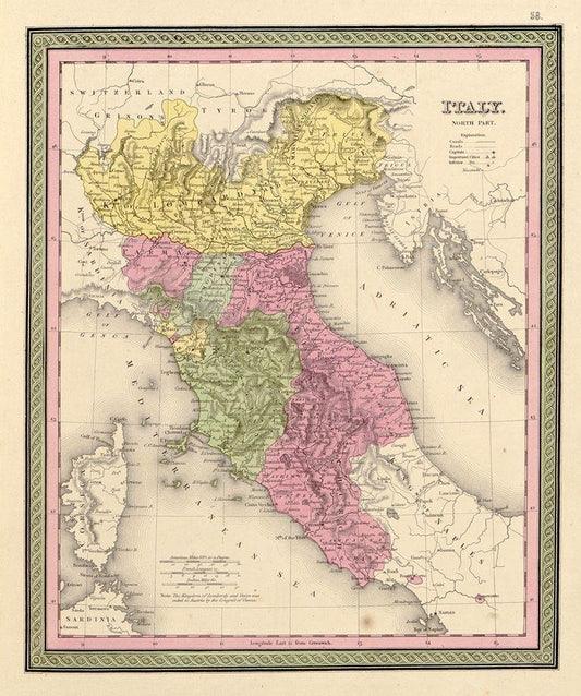 Italy 1849 White Modern Wood Framed Art Print with Double Matting by Vintage Maps
