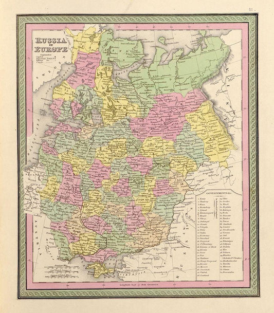 Russia in Europe 1849 White Modern Wood Framed Art Print with Double Matting by Vintage Maps