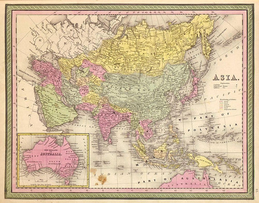 Asia 1849 White Modern Wood Framed Art Print with Double Matting by Vintage Maps
