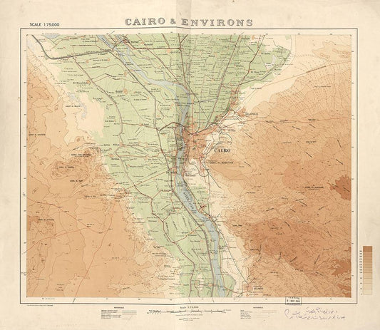 Cairo and Its Environs 1925 White Modern Wood Framed Art Print with Double Matting by Vintage Maps