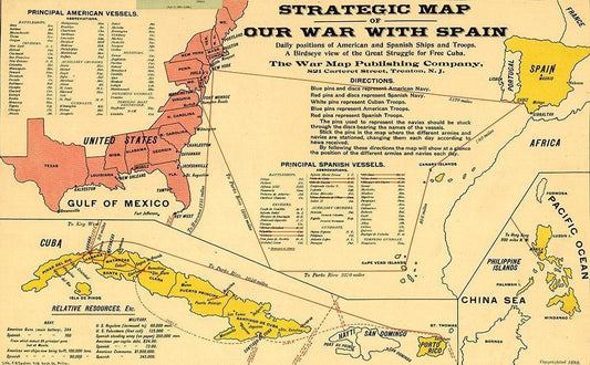 Strategic Map of Our War with Spain 1898 White Modern Wood Framed Art Print with Double Matting by Vintage Maps