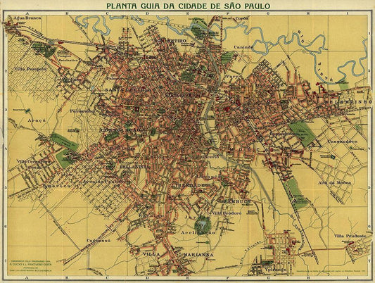 Sao Paolo Brazil 1913 White Modern Wood Framed Art Print with Double Matting by Vintage Maps