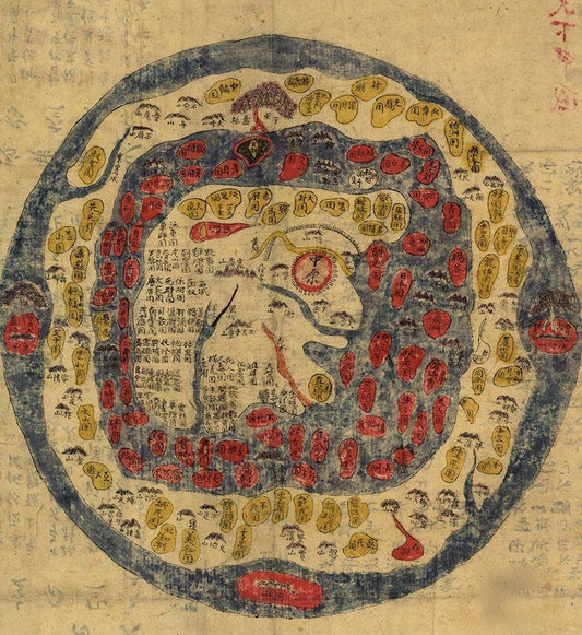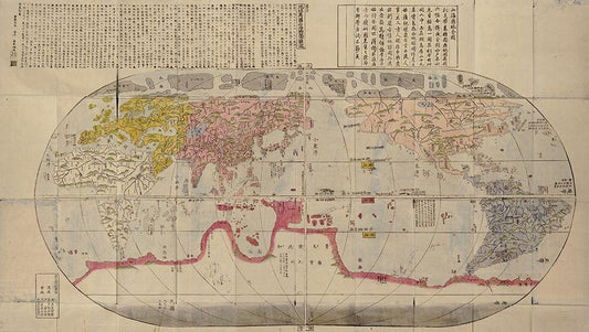 World Map Chinese during the Ming Period 1800 White Modern Wood Framed Art Print with Double Matting by Vintage Maps
