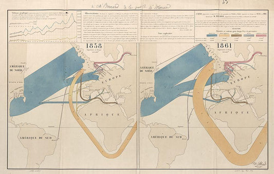 World Importation 1858 to 1861 White Modern Wood Framed Art Print with Double Matting by Vintage Maps