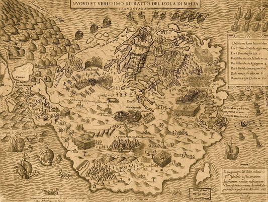Island of Malta 1563 White Modern Wood Framed Art Print with Double Matting by Vintage Maps