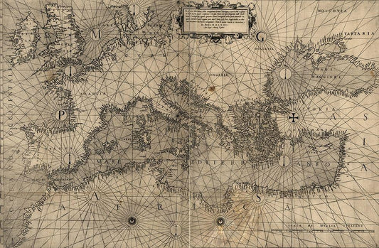 Europe in 1572 White Modern Wood Framed Art Print with Double Matting by Vintage Maps